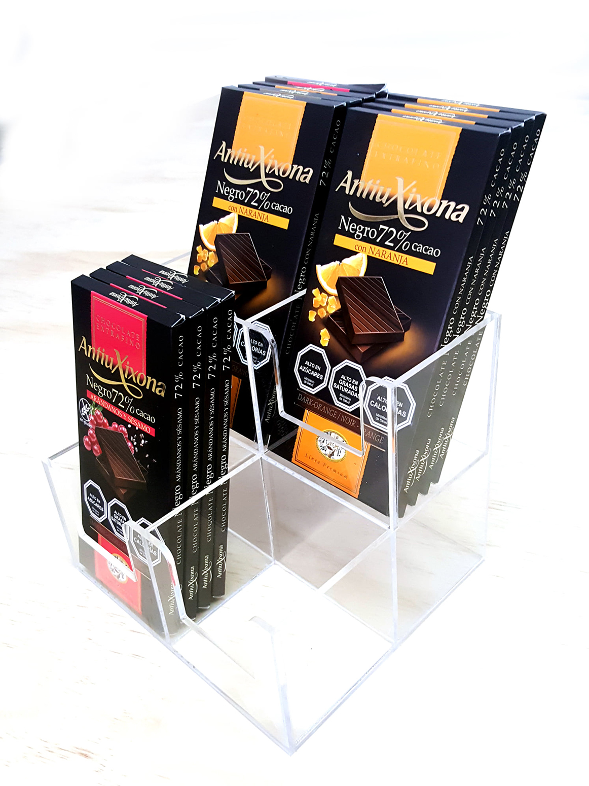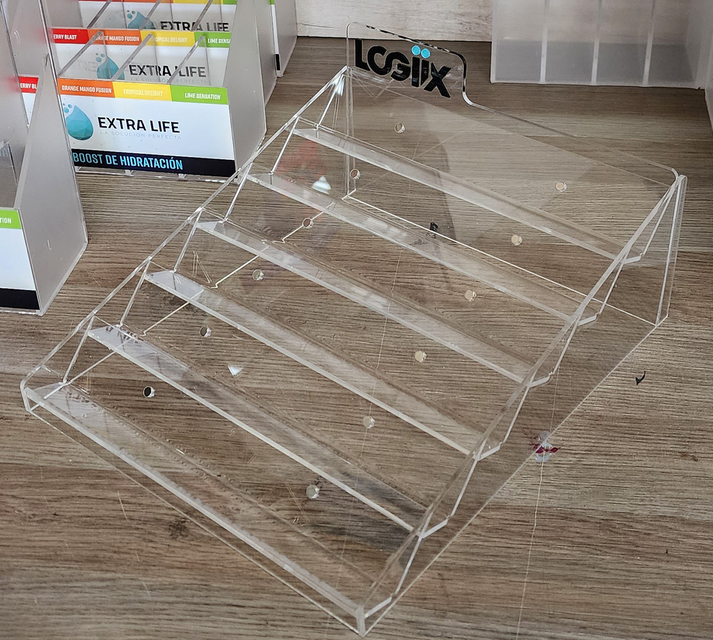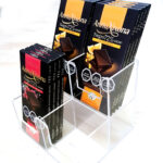 Desarrollo y fabricación de exhibidores y dispensadores de alta calidad funcionales en acrílico. Creamos soluciones a medida para puntos de venta, adaptando nuestros productos a requerimientos específicos de diseño y branding para maximizar el impacto visual de tu marca o producto.